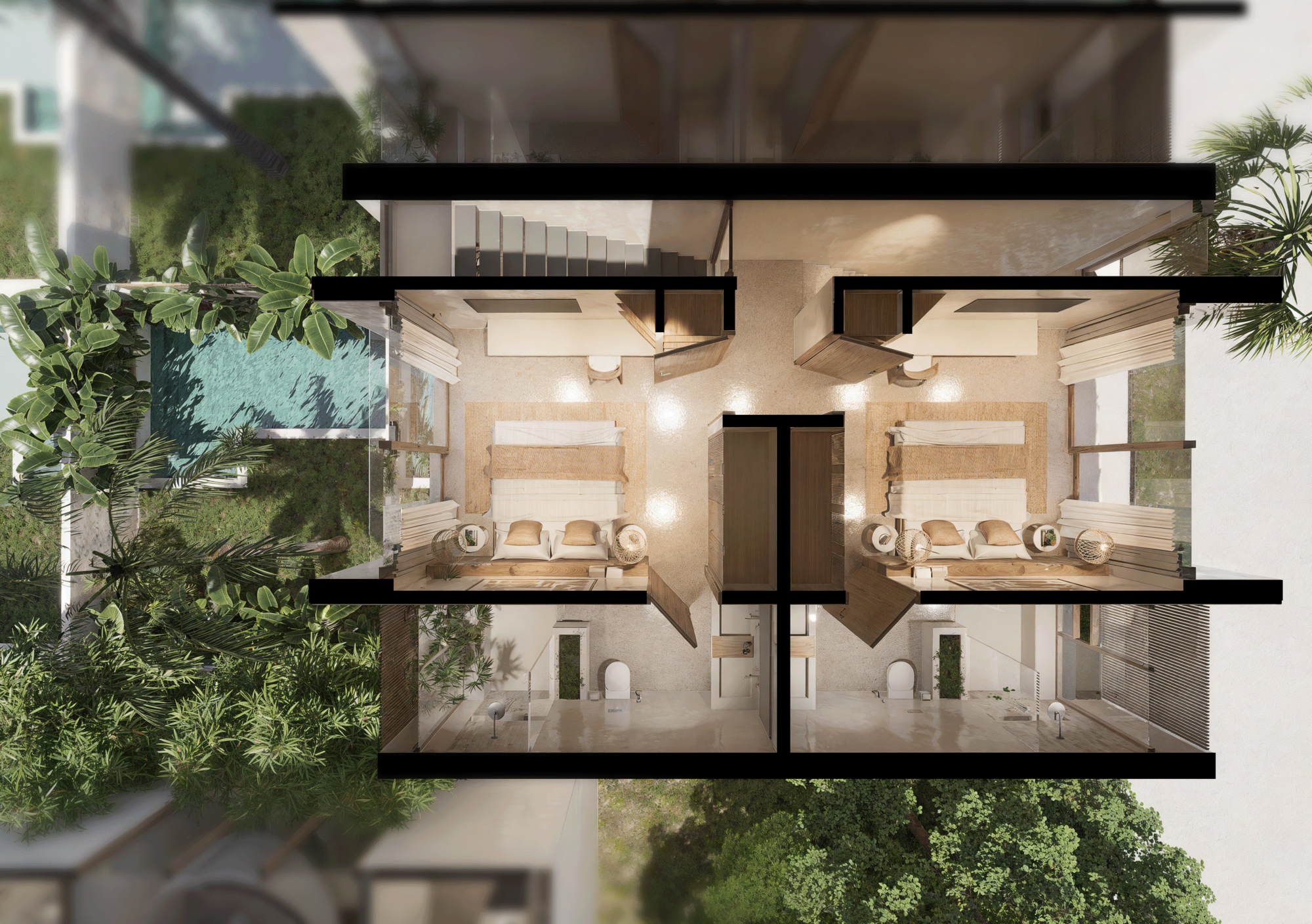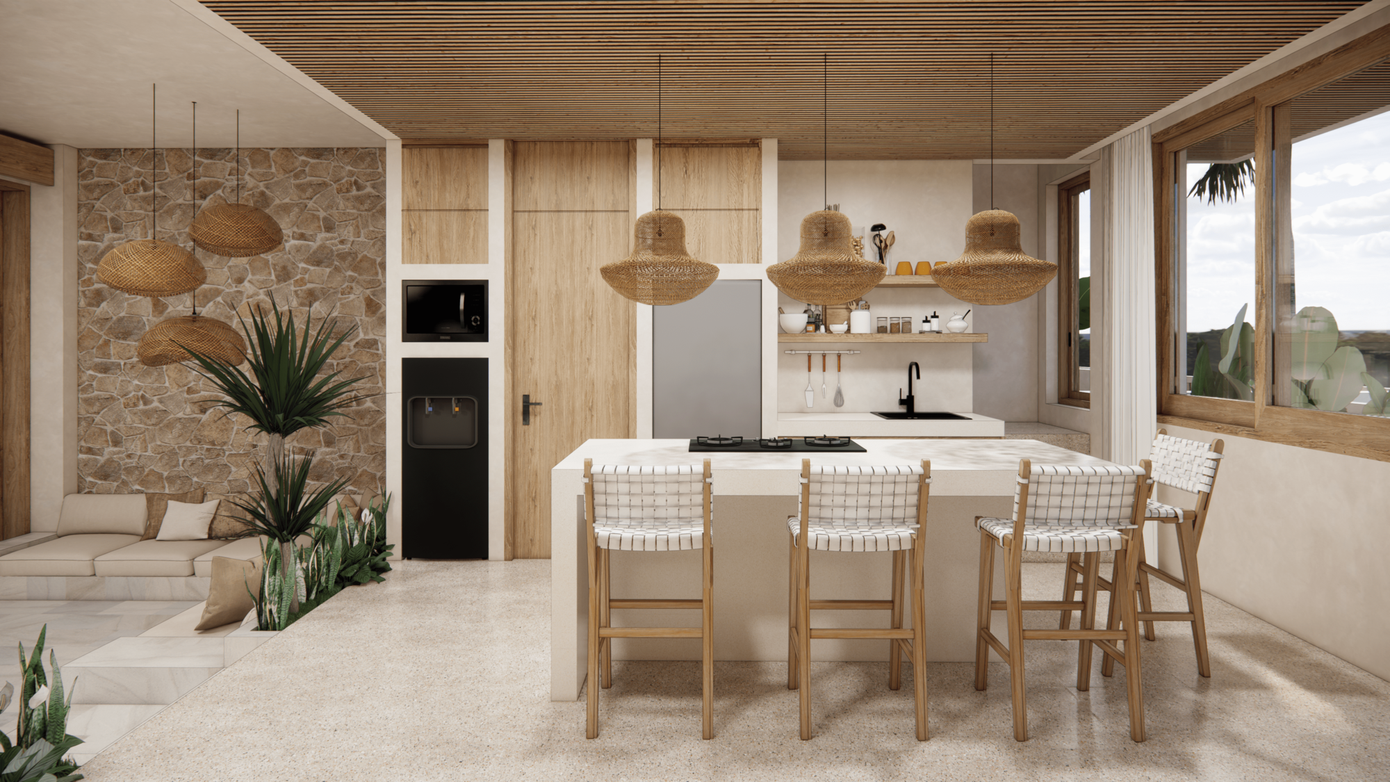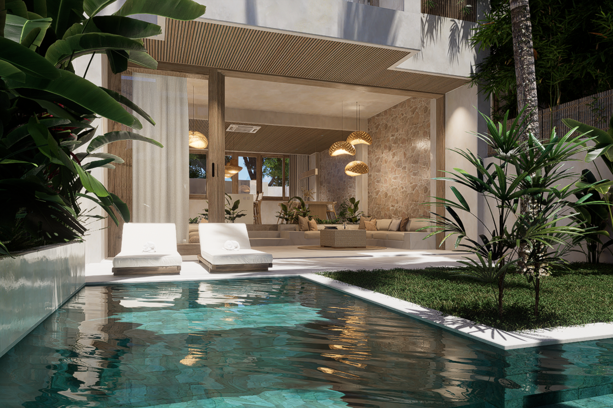 This modern home combines Mediterranean and tropical influences, offering a natural, minimalist setting. Enjoy its relaxing rooftop, close to the sea and the best restaurants.