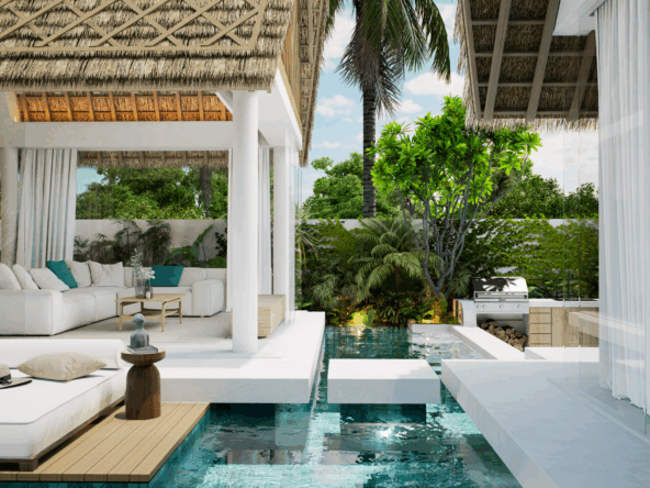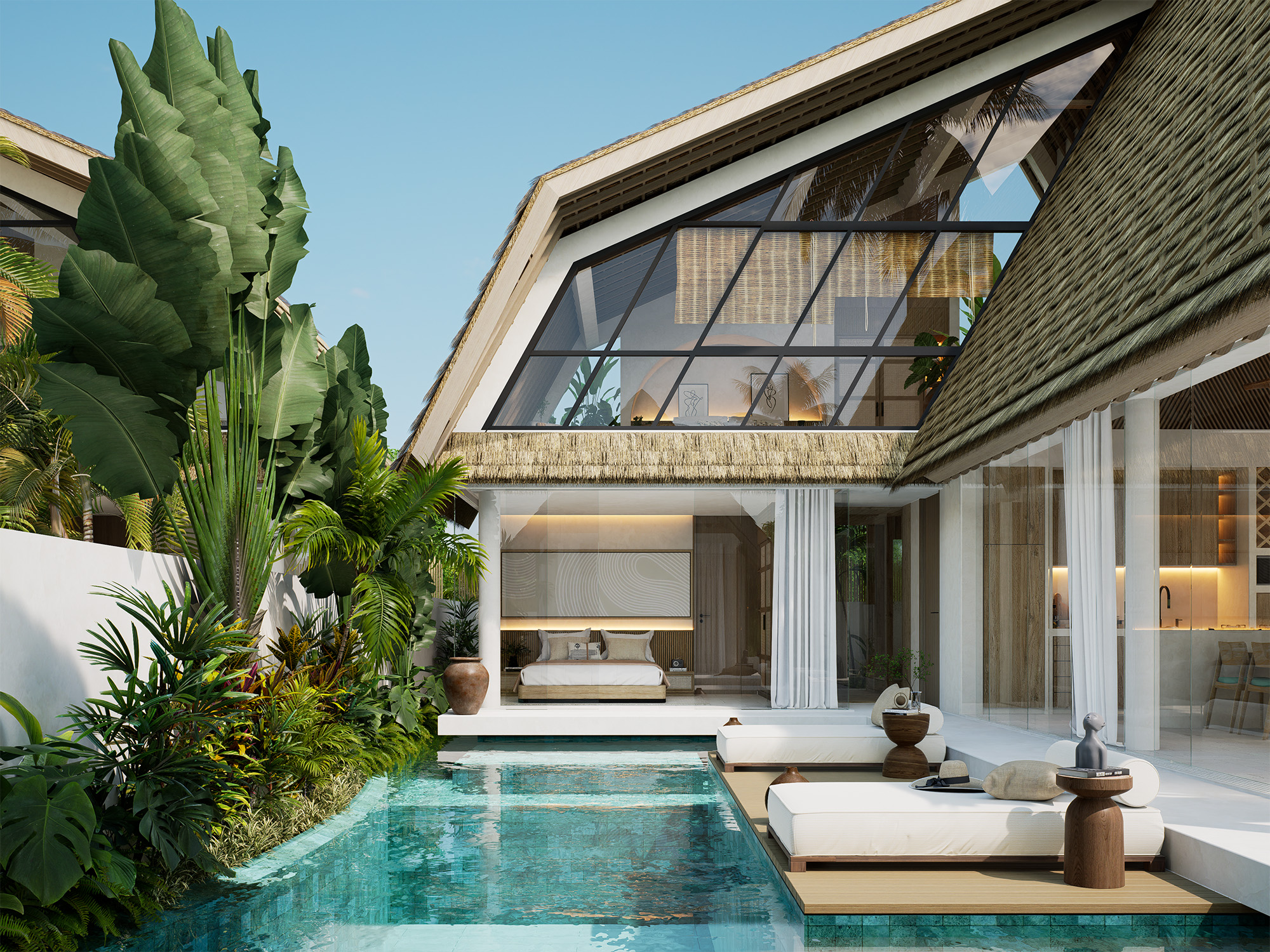 Discover this radiant villa, where modernity and luminosity meet to create a dream space. With its unique pool surrounding the villa, private sauna and ice bath, it’s the perfect place for the ultimate wellness experience.