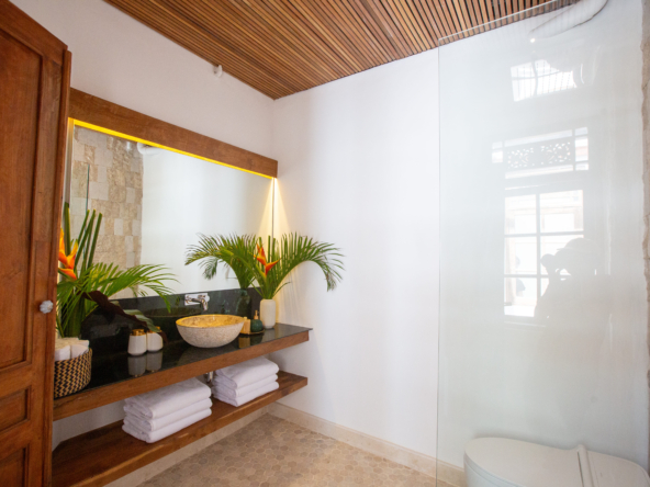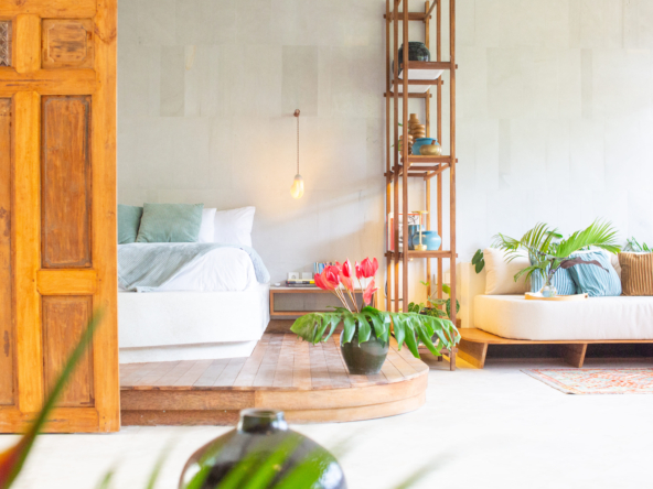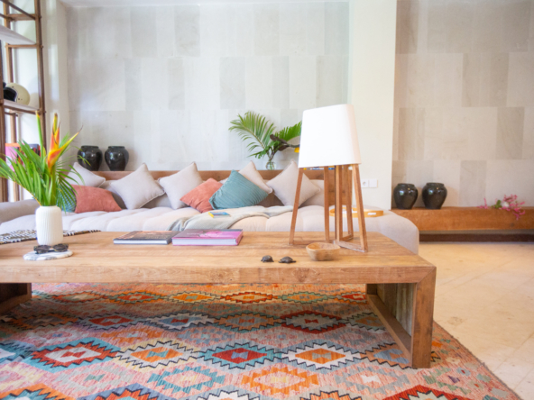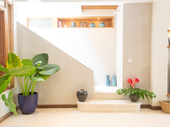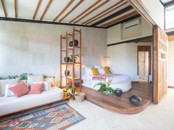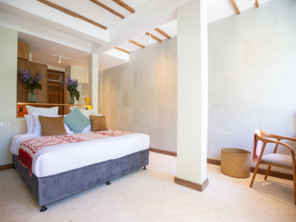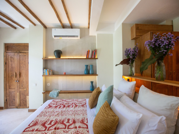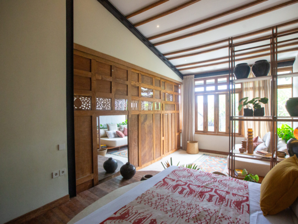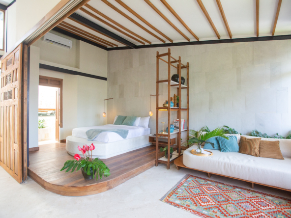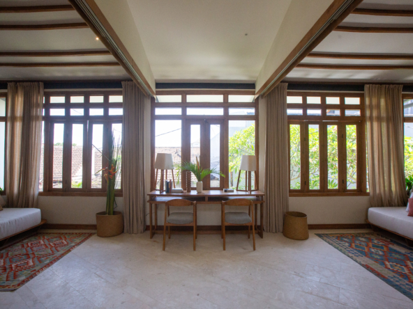 The Mawar Villa features a traditional-modern fusion design and is fully finished. It includes 3 bedrooms, 3 bathrooms, a closed kitchen, living and dining areas, and comes fully furnished. The villa has a private pool and parking but no garden, and it is built on two levels. It is available on a leasehold basis for 24 years with an option to extend for an additional 10 years. The land size is 1.5 are (150 m²) and the building size is 200 m².