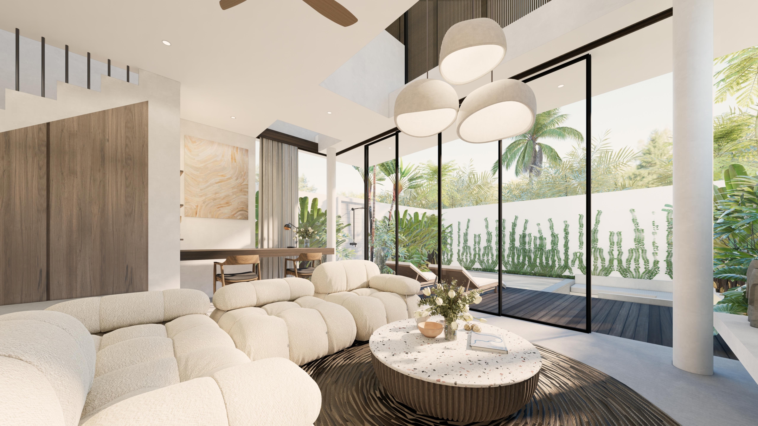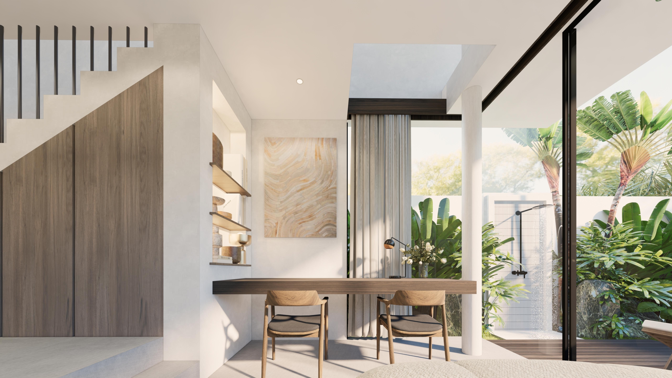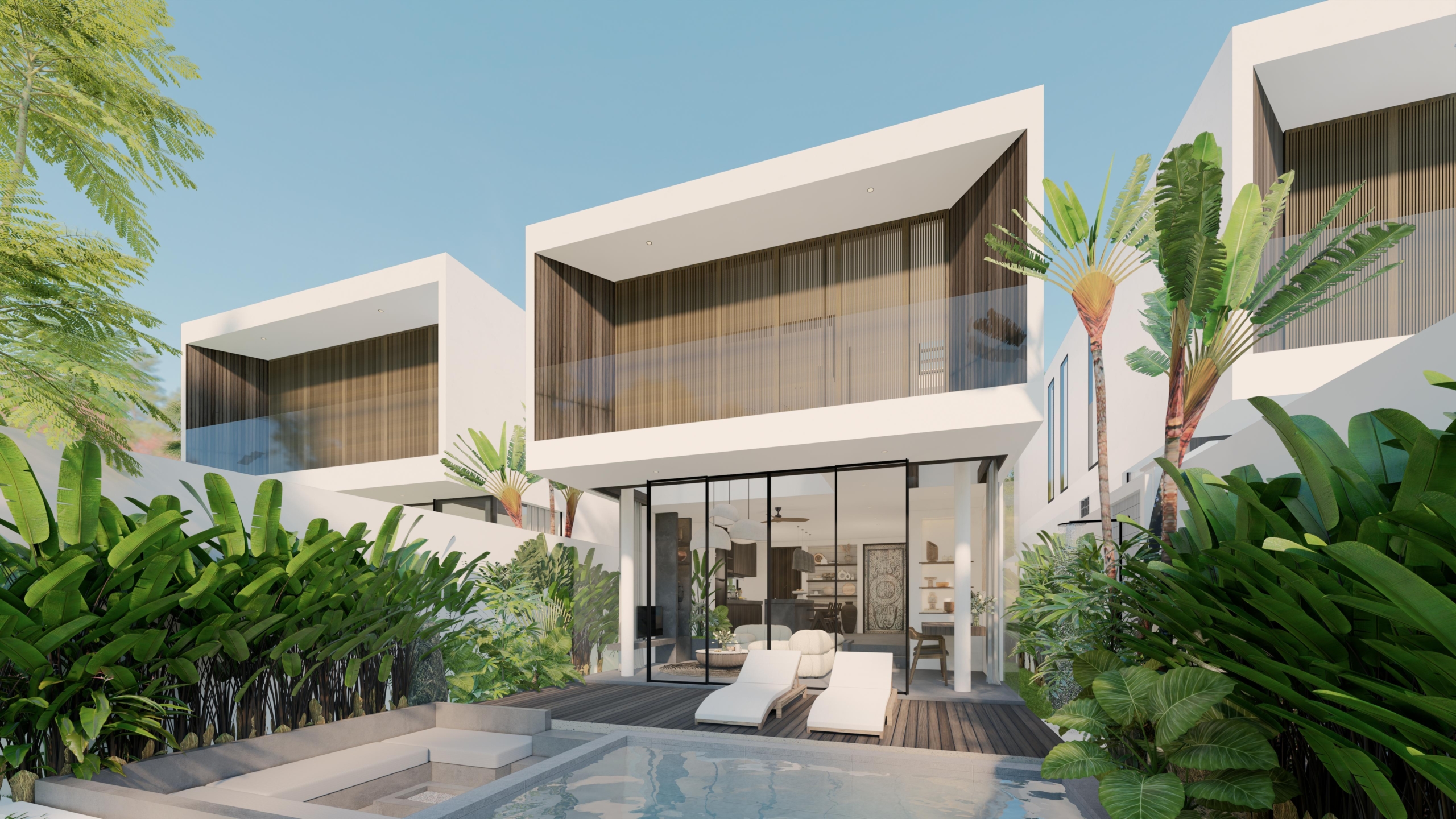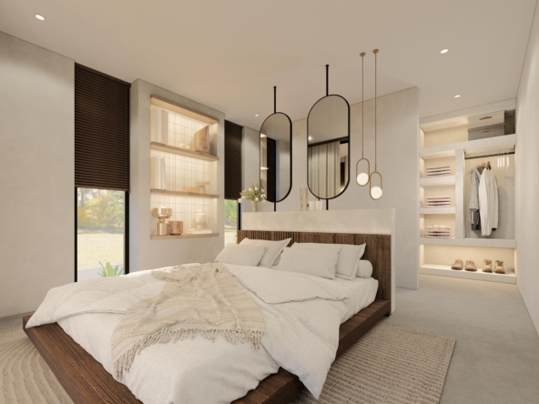 Three detached 2-bedroom villas in Bingin, Uluwatu, thoughtfully designed to offer spaciousness, comfort, and the essence of tropical living. The villa features a tropical design, a fully equipped kitchen, a private pool with outdoor shower, and a balcony to enjoy the surroundings. The spacious living area can be enjoyed open or enclosed, offering flexibility to suit your lifestyle. With the added convenience of private parking, these villas offer a perfect blend of style and function in one of Bali’s most sought-after locations.