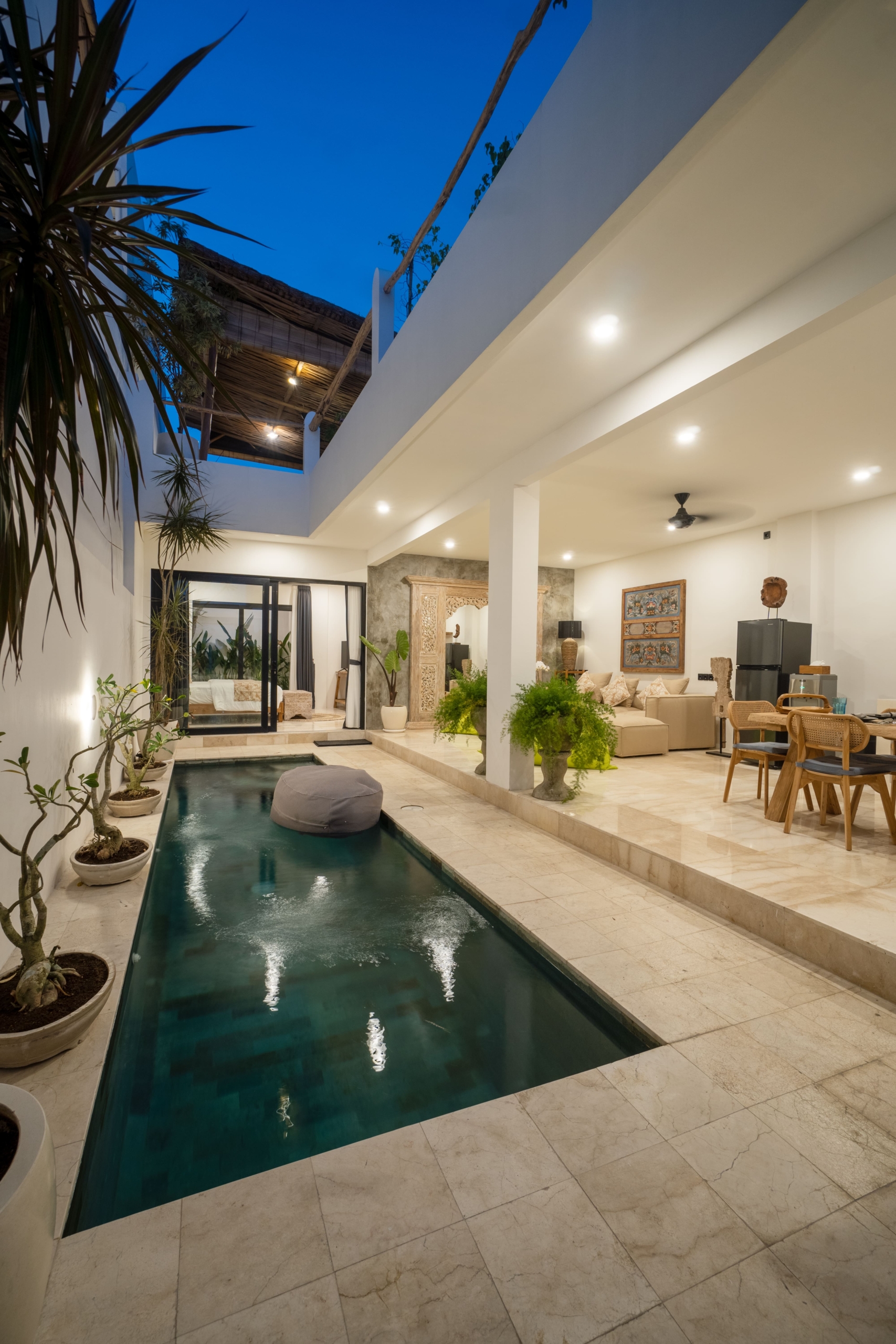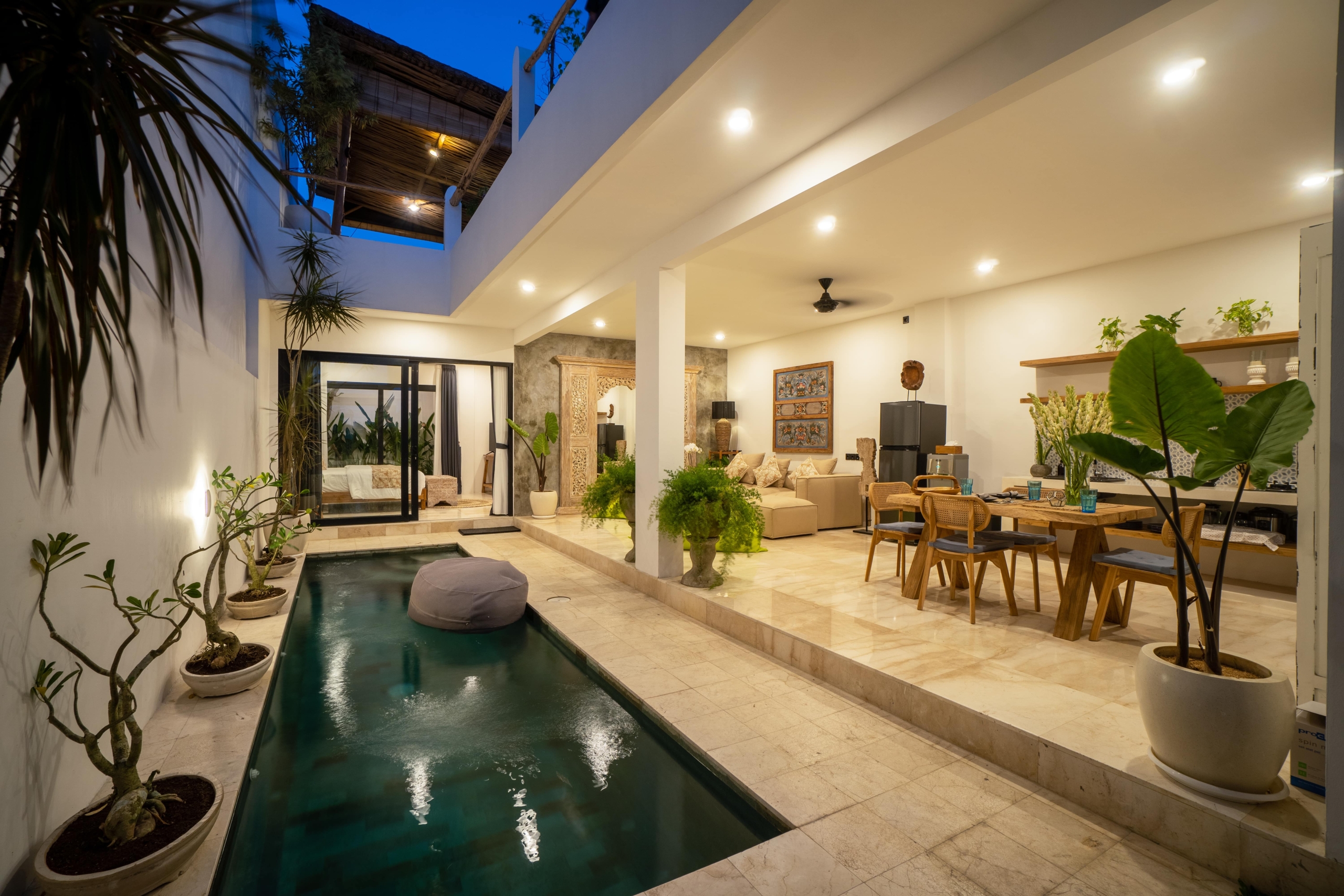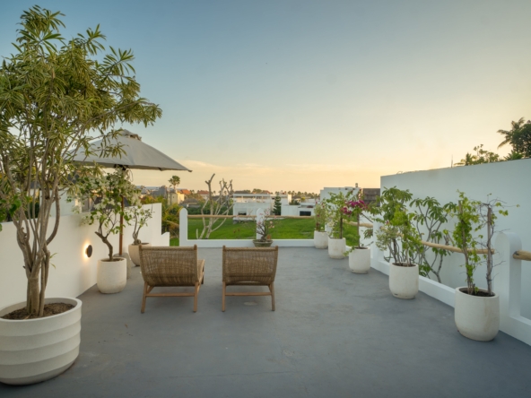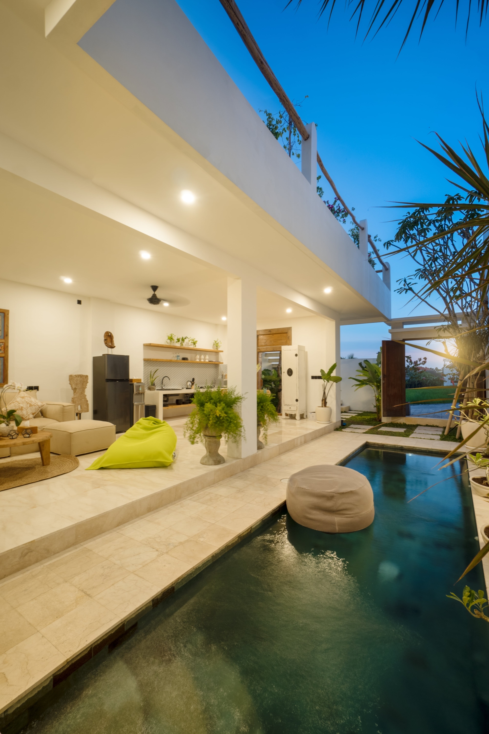 This light-filled, modern villa is tucked away in the peaceful residential area of Tumbak Bayuh, offering a serene retreat just 10 minutes from Pererenan Beach and Canggu. Ideal for those who value tranquility while staying close to Bali’s lively coastal scene. Set on 140 m² of land with an 86 m² building, the villa features a refreshing swimming pool, a spacious roof terrace, and generous car parking—delivering both comfort and convenience in a sought-after location.
